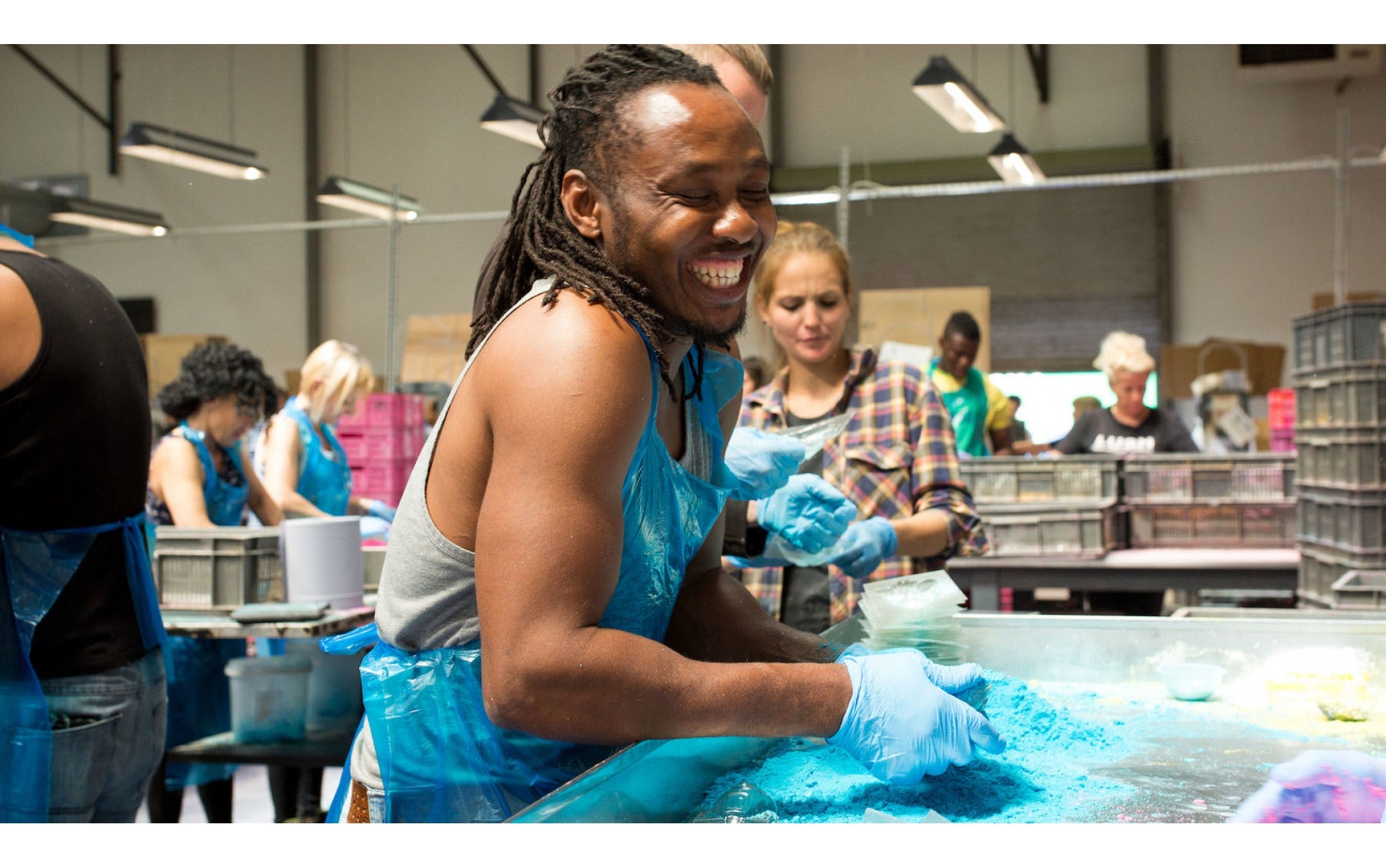 Learn moreA spectrum of bright colours adorns the factory, with powders piled high on work benches.