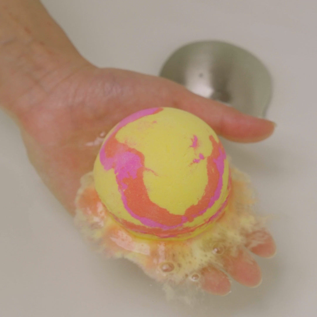 Sodium Bicarbonate, Citric Acid, Buchu Oil (Barosma betulina), Litsea Cubeba Oil, Sweet Wild Orange Oil (Citrus sinensis), Titanium Dioxide, Cornstarch (Zea mays), Talc, Dipropylene Glycol, Synthetic Fluorphlogopite, Sodium Coco Sulfate, Cocamidopropyl Betaine, Tin Oxide, Alpha-Isomethyl Ionone, *Citral, *Limonene, Perfume, Colour 47005:1, Colour 45410:2, Colour 14700, Colour 77491, Colour 77499