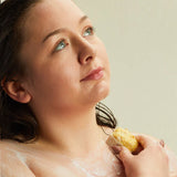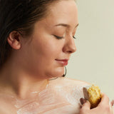 Fair Trade Organic Cocoa Butter (Theobroma cacao), Apricot Kernel Oil (Prunus armeniaca), Sodium Bicarbonate, Laureth 4, Ground Almond Shells (Prunus dulcis), Citric Acid, Rose Absolute (Rosa damascena), Sandalwood Oil (Santalum austro-caledonicum vieill), Marigold Petals (Calendula officinalis), Gardenia Extract (Gardenia jasminoides), Perfume