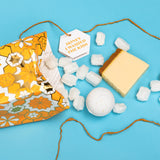 - Khadi paper - Made from upcycled cotton t-shirt offcuts in Hubli, India. - Inner box - 100% recycled board. - Lokta twine - Eco pops - Your gift will be packed with these biodegradable product protectors.
