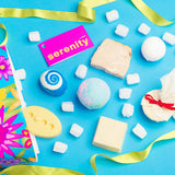 Deep Sleep Epsom Salt cube bath bomb Sleepy body lotion 50g Mini Blue Skies and Fluffy White Clouds bubble bar Sleepy shower gel 100g Ceridwen's Cauldron bath oil Buffy body butter Sultana of Soap soap 100g