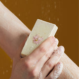 Rapeseed Oil; Coconut Oil (Brassica napus; Cocos nucifera), Fresh Lemon Peel Infusion (Citrus limonum), Glycerine, Fresh Geranium Leaf Infusion (Pelargonium graveolens), Propylene Glycol, Water (Aqua), Perfume, Rose Water (Rosa damascena), Titanium Dioxide, Organic Virgin Coconut Oil (Cocos nucifera), Fir Needle Absolute (Abies balsamea), Oakmoss Absolute (Evernia prunastri), Kenyan Geranium Oil (Pelargonium graveolens), Sodium Chloride, Citric Acid, Sodium Hydroxide, Sodium Bicarbonate, EDTA, Tetrasodium Etidronate, *Citral, *Citronellol, Oakmoss Extract (Evernia prunastri), *Geraniol, *Limonene, *Linalool, Pressed Mint Flowers (Mentha spicata), Dried Lemon Verbena (Aloysia citrodora), Pressed Mini Daisies (Argyranthemum frutescens), Pressed Daisies (Bellis perennis)