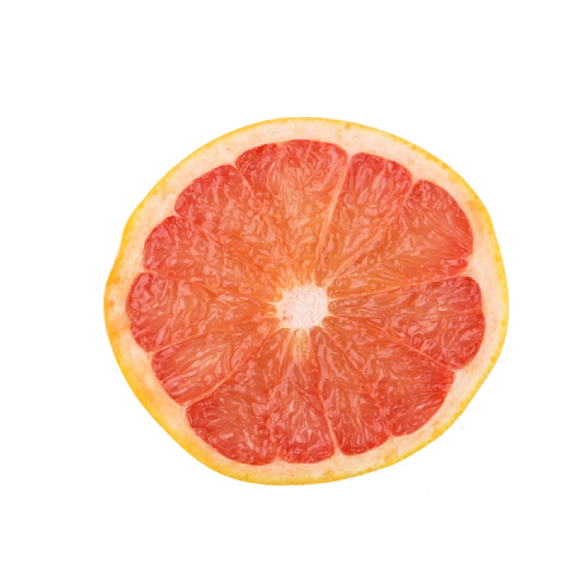 Grapefruit (Citrus x paradisi) is a hybrid between an orange and a pomelo that is native to the Caribbean island of Barbados. There are many varieties with different skin and pulp colours, the best known to consumers being pink and red grapefruits as they have the sweetest taste.