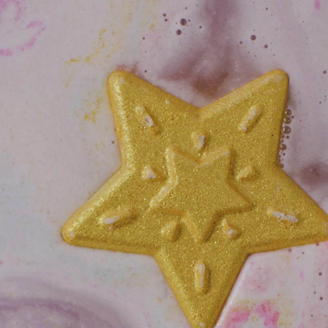 You've seen a shooting star, but a spinning one? It's impossible, surely! Follow this sweet, popcorn-scented creation into the tub and marvel at its magic: crackles of popping candy and spirals of dazzling colour. It has to be seen to be believed.